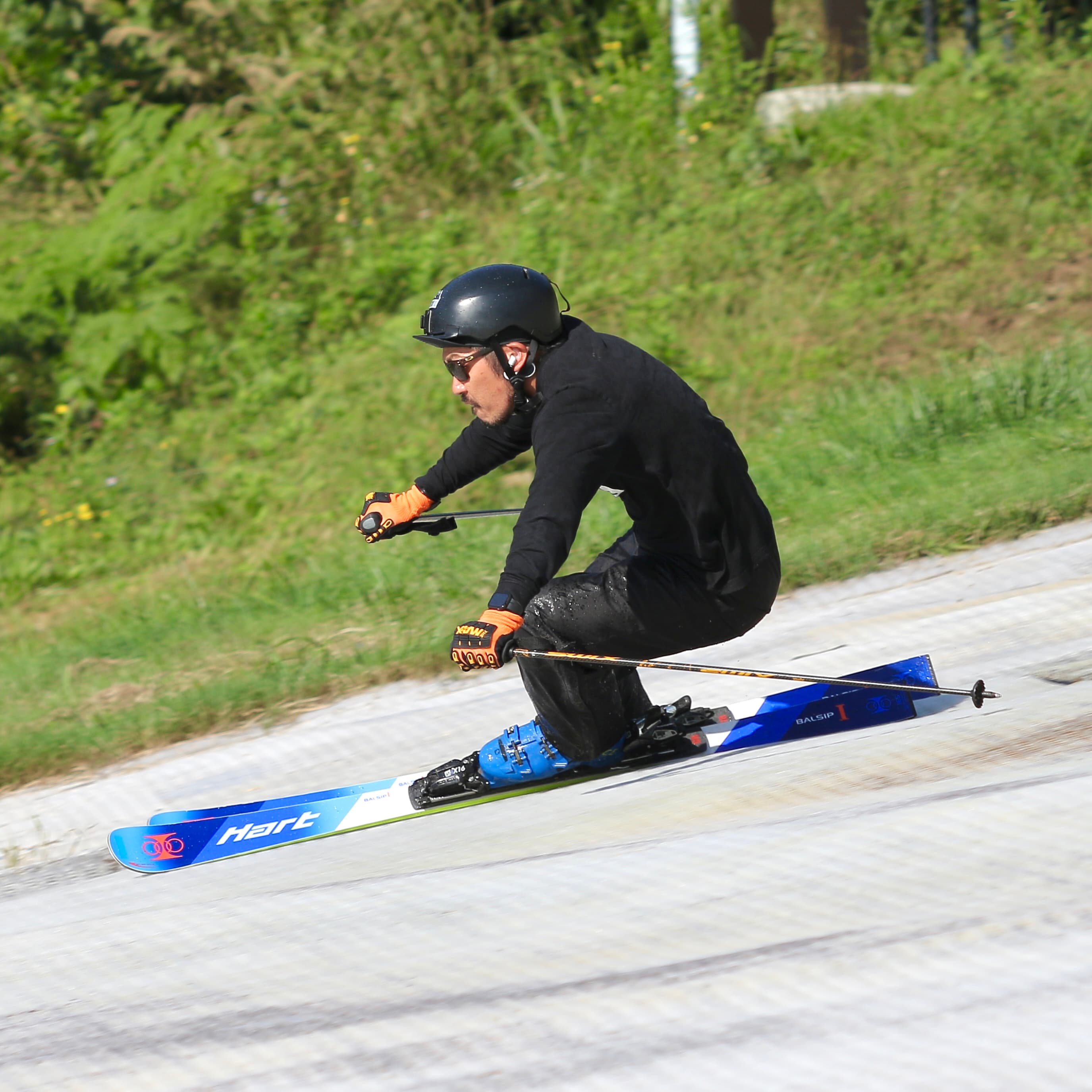 摩擦抵抗が雪と違うためサマーゲレンデ専用スキーの使用がおすすめです。